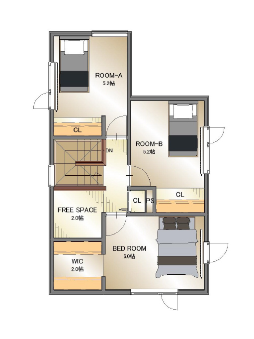 25.5A 価格 1500万~ FLOOR PLAN 1F 2F 1F 床面積 40.9㎡ (12.3坪) 2F 床面積 43.4㎡ (13.1坪) 延床面積 84.3㎡ (25.5坪) 建築面積 43.4㎡ (13.1坪) EXTERIOR