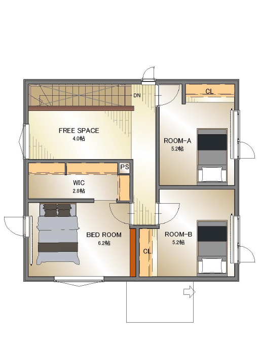 30A FLOOR PLAN 1F 2F 1F 床面積 49.6㎡ (15坪) 2F 床面積 49.6㎡ (15坪) 延床面積 99.2㎡ (30坪) 建築面積 52.1㎡ (15.7坪) EXTERIOR