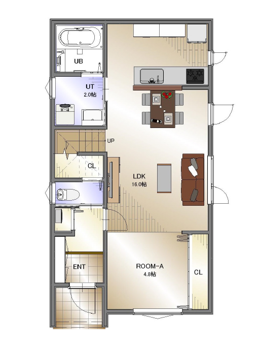 32B FLOOR PLAN 1F 2F 1F 床面積 52.9㎡ (16坪) 2F 床面積 52.9㎡ (16坪) 延床面積 105.8㎡ (32坪) 建築面積 55.4㎡ (16.7坪) EXTERIOR