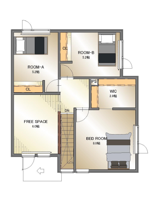 33A FLOOR PLAN 1F 2F 1F 床面積 54.6㎡ (16.5坪) 2F 床面積 54.6㎡ (16.5坪) 延床面積 109.2㎡ (33坪) 建築面積 57.1㎡ (17.2坪) EXTERIOR